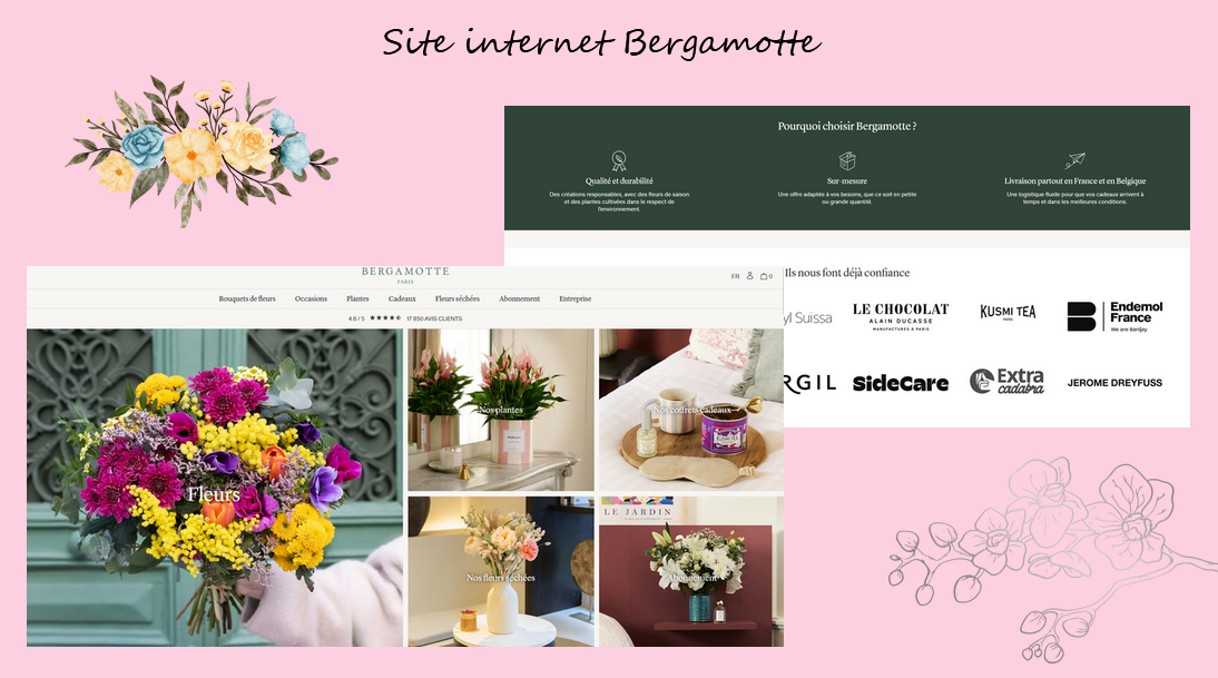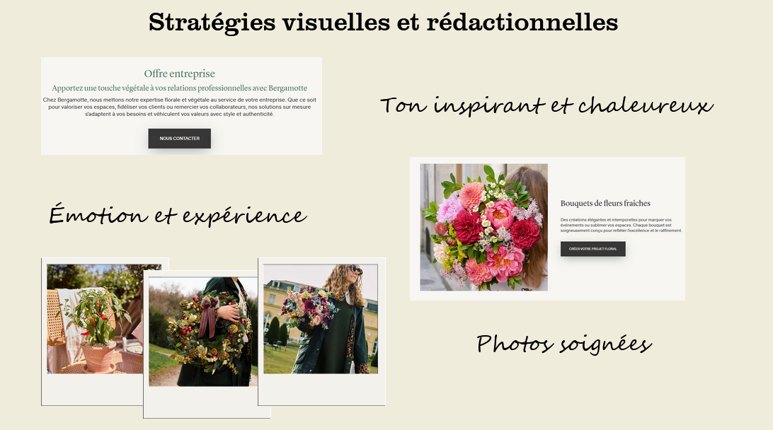 Pour commencer, j’ai réalisé un benchmark des concurrents (analyse rapide de ce que font les autres entreprises similaires) afin d’étudier leur présence en ligne, leurs stratégies visuelles et rédactionnelles, et leur communication sur les réseaux sociaux. Cette étape m’a permis d’identifier des bonnes pratiques à adapter pour Mimimosa tout en définissant des axes de différenciation pour renforcer son identité unique, chaleureuse et authentique.