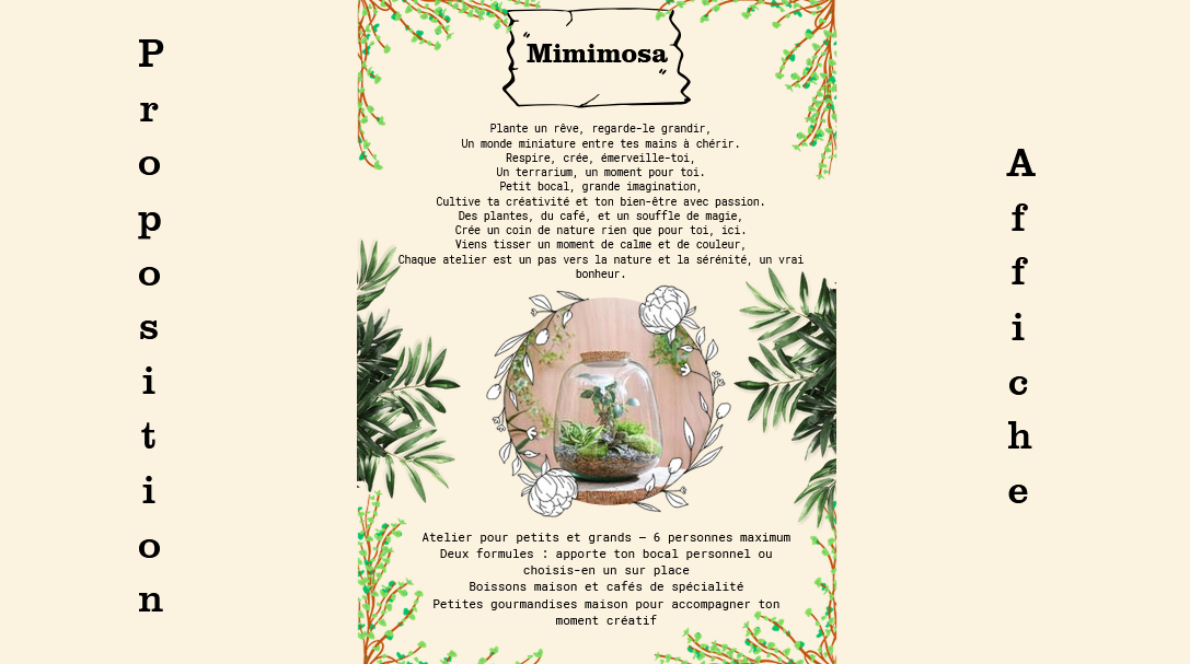 Dans le cadre de ma formation à Normandie Web School, j’ai travaillé sur un projet de stratégie de communication digitale pour Mimimosa, la petite jardinerie de Rouen dirigée par Migueline Lemesle. L’objectif était de concevoir une campagne cohérente avec l’univers de l’établissement, qui combine coffee shop et jardinerie, et de mettre en avant les ateliers créatifs proposés, notamment les terrariums, la broderie et le crochet.