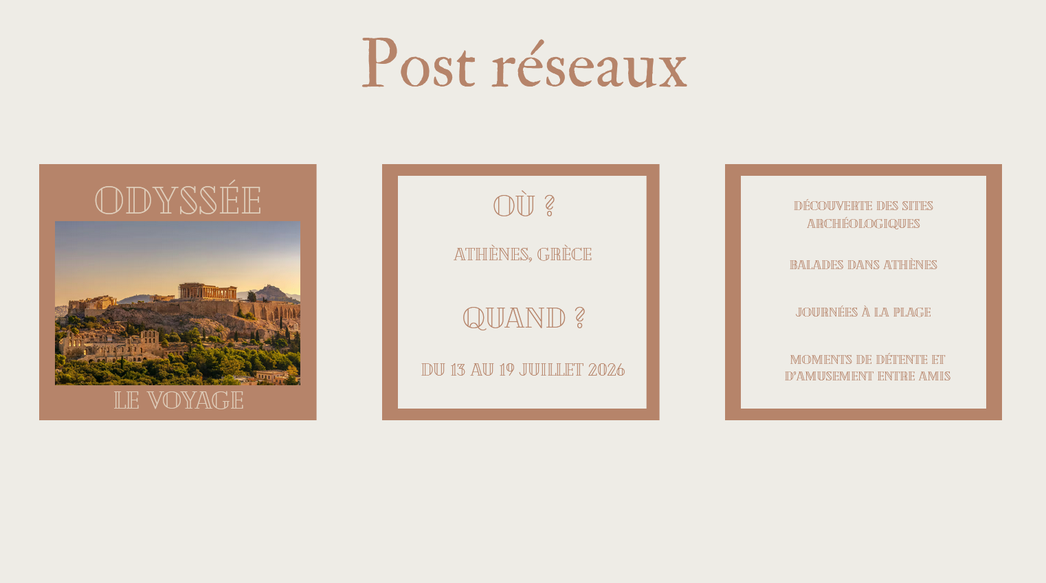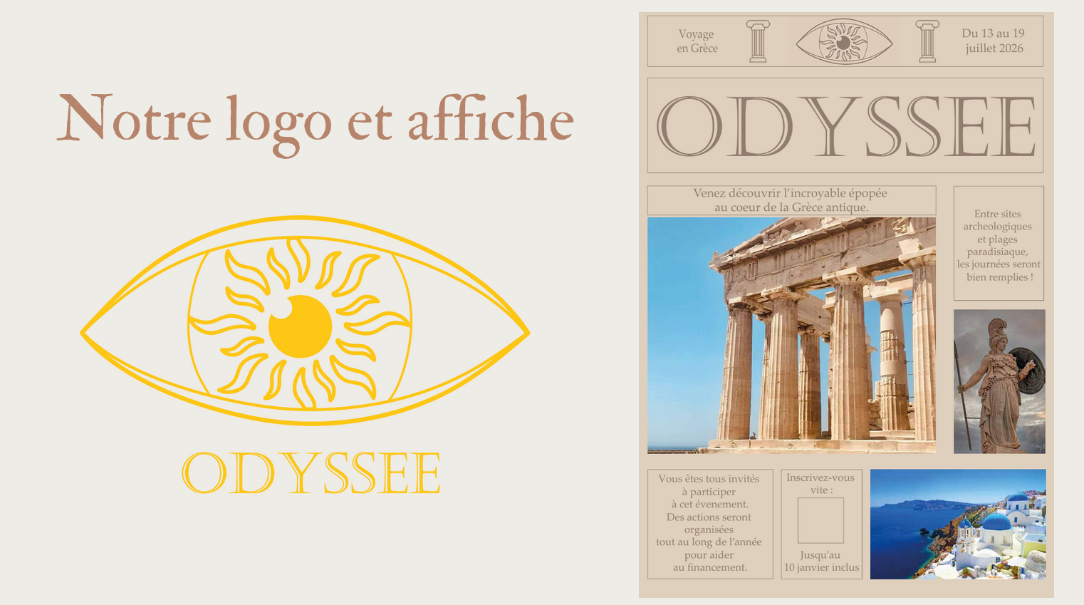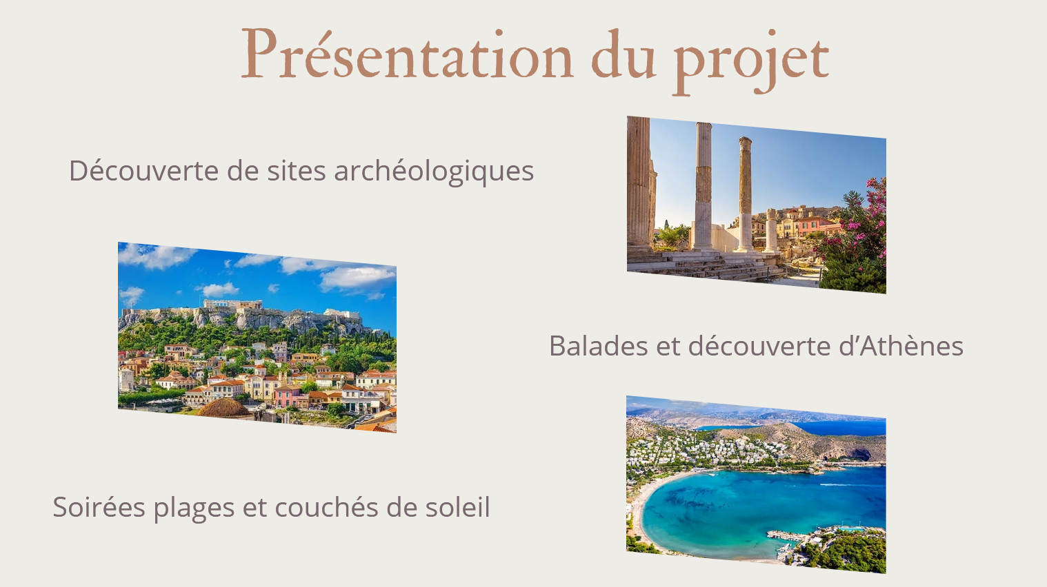 En début d’année, dans le cadre d’un projet visant à favoriser la connaissance et le travail en équipe, nous avons imaginé un projet fictif de voyage pour notre école, incluant sorties et activités. L’objectif était de concevoir une proposition attractive et complète afin qu’elle soit retenue et qu’elle plaise à l’ensemble de la classe. Avec mon équipe, nous avons choisi de proposer un voyage en Grèce.