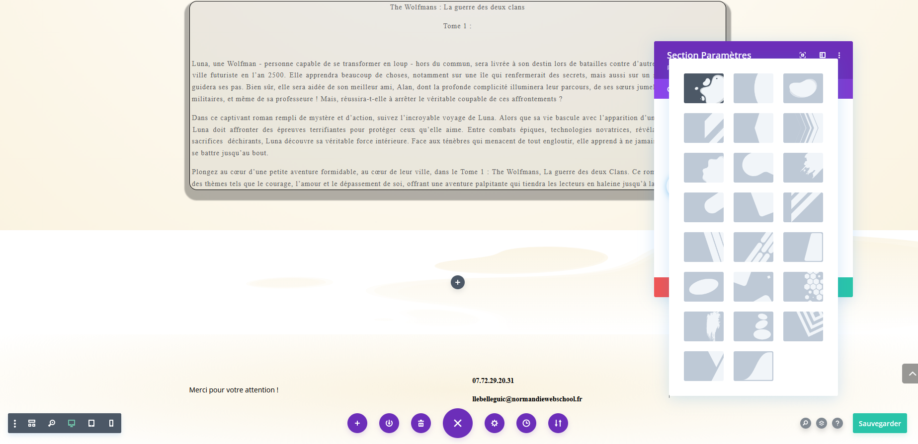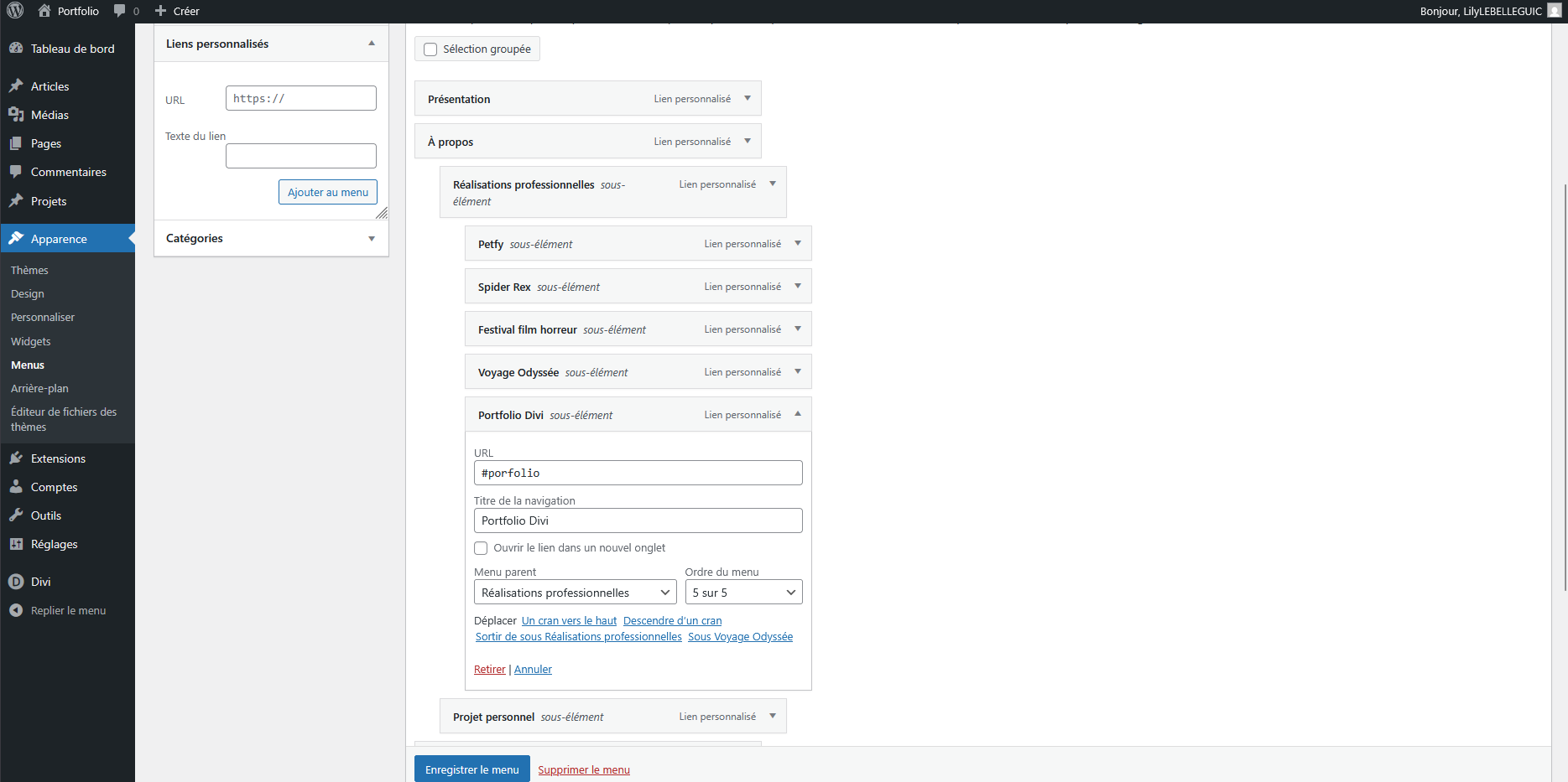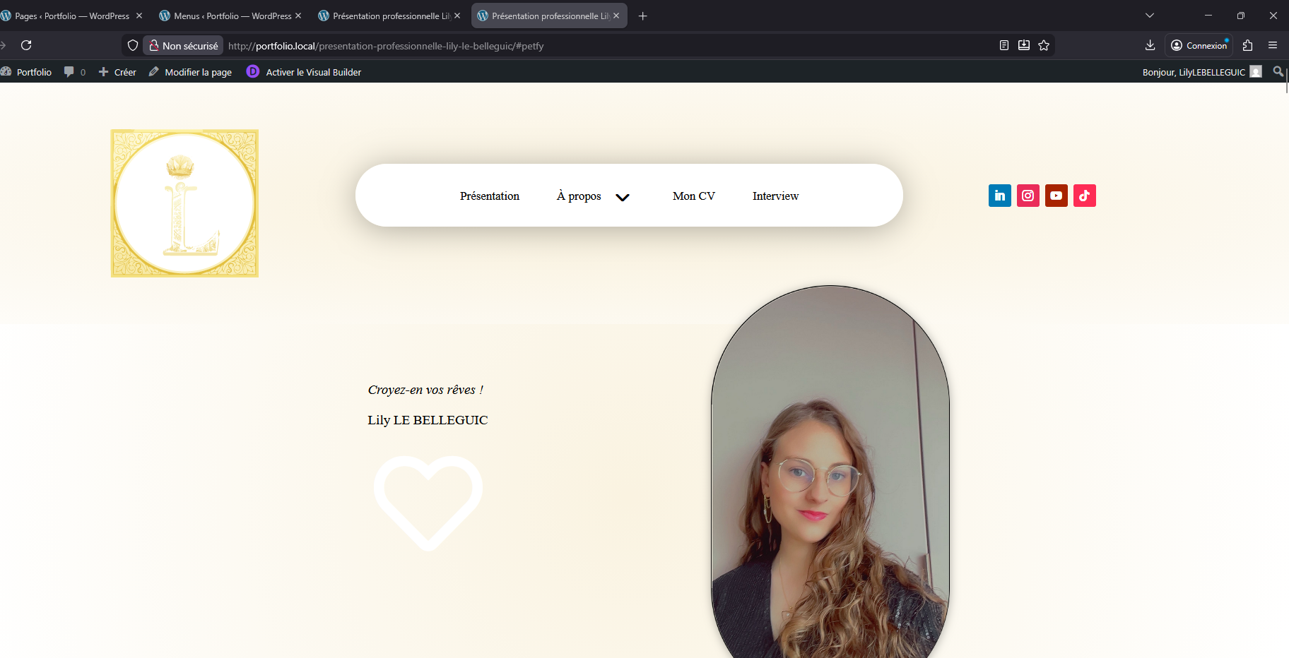 Mon ressenti sur Divi : j’apprécie particulièrement sa simplicité d’utilisation dès que l’on maîtrise les bases. Après un peu d’entraînement, il devient facile de retrouver les éléments, de structurer les pages et de gérer les représentations graphiques, ce qui rend la création de mon portfolio à la fois rapide et intuitive.